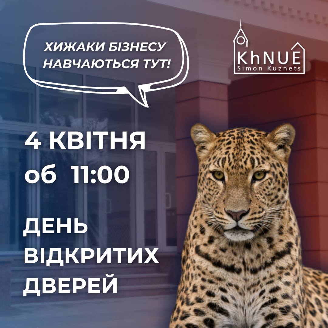 Ягуар Кактус знає, щоб бути першим потрібно не просто мріяти, а діяти вже сьогодні Саме тому Харківський національний економічний університет імені Семена Кузнеця запрошує учнів та їхніх батьків на День відкритих дверей 4 квітня 2026 року 11:00 ОФЛАЙН, ще більше емоцій, знайомств і можливостей. Формат, який заряджає на вибір